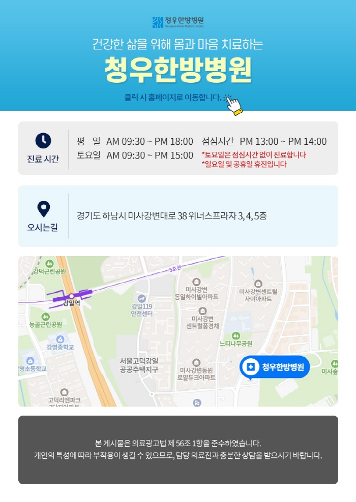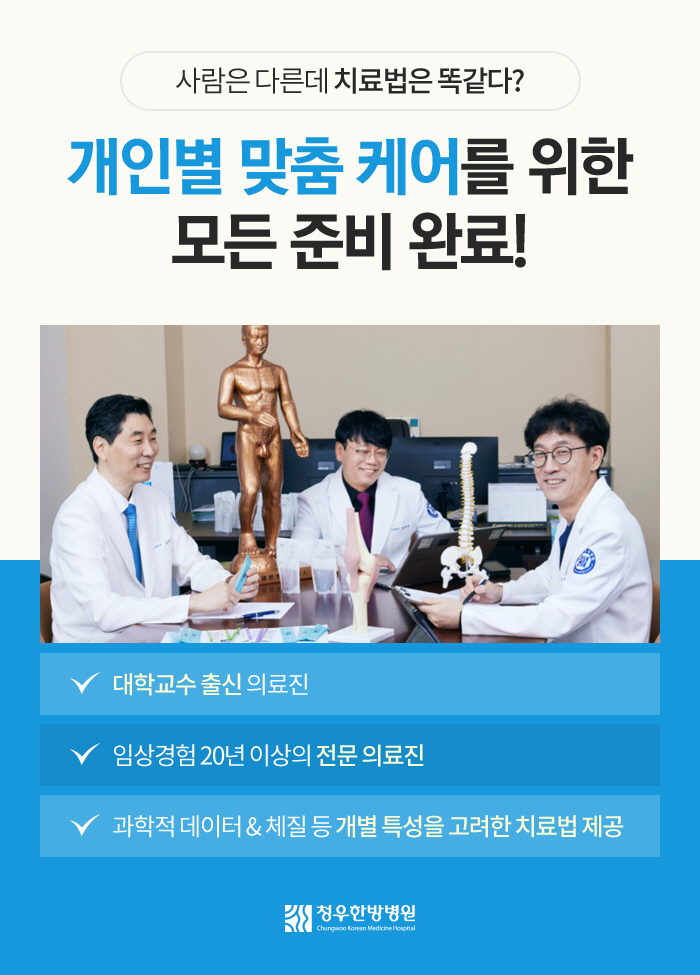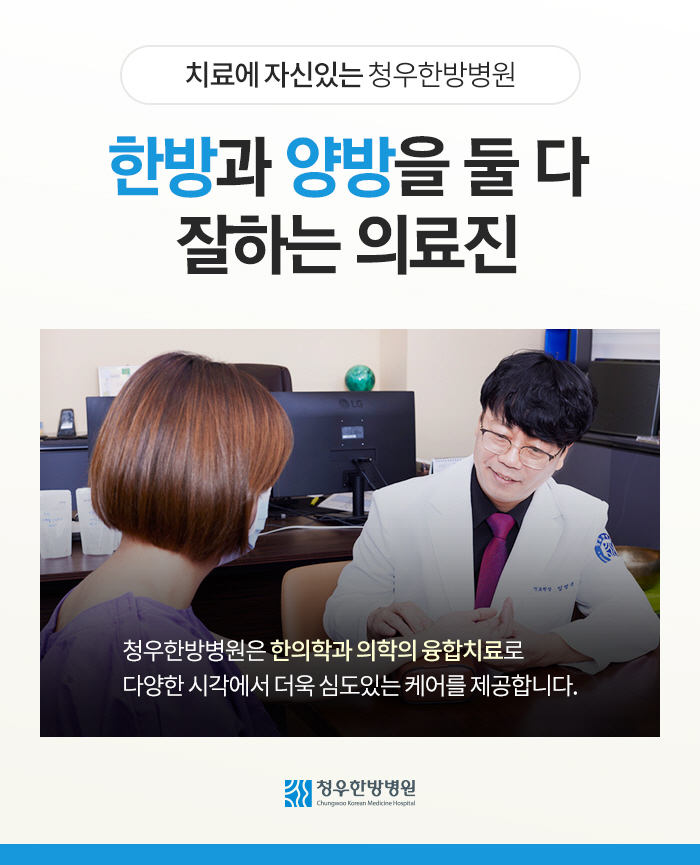 "건강한 삶으로 돌아갈 수 있게 청우한방병원이 든든하게 곁을 지키겠습니다."